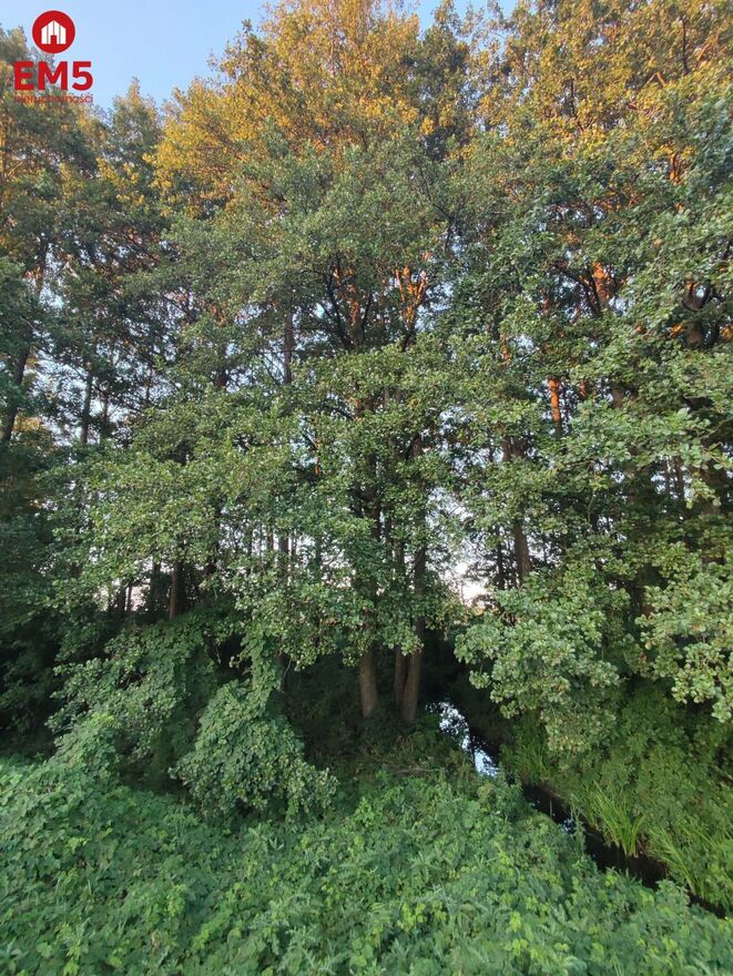 Cała działka jest zadrzewiona, okolica spokojna i zielona, doskonała na rekreację i wypoczynek w otoczeniu przyrody.